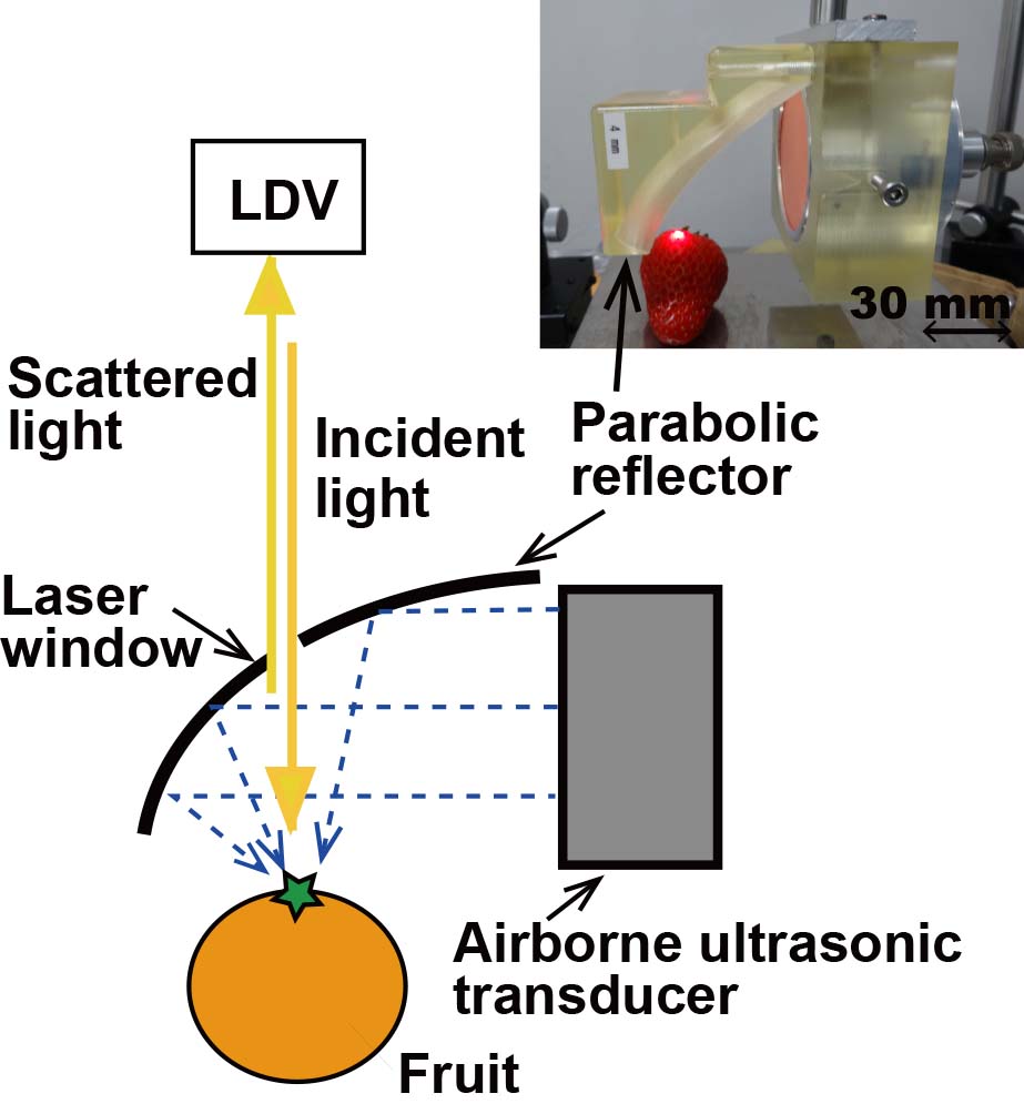 本研究室では空中超音波を集束させて、nmオーダの微小な振動を発生させ、その振動特性から柔らかさを測定する方法を考案しました。